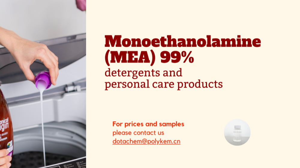 Na Oddziaływać, wysokiej jakości monoetanolamina 99%, które oferujemy, spełnia surowe wymagania branży detergentów i higieny osobistej. Aby uzyskać więcej informacji na temat naszych produktów MEA i ich specyfikacji, kliknijTutajAby odwiedzić stronę produktu. Jeśli masz jakieś pytania, potrzebujesz próbek lub chcesz omówić swoje konkretne wymagania, skontaktuj się z nami pod adresem dotachem@polykem.cn. Nasz zespół ekspertów jest zawsze gotowy, aby Ci pomóc i zapewnić najlepsze rozwiązania dla potrzeb biznesowych.